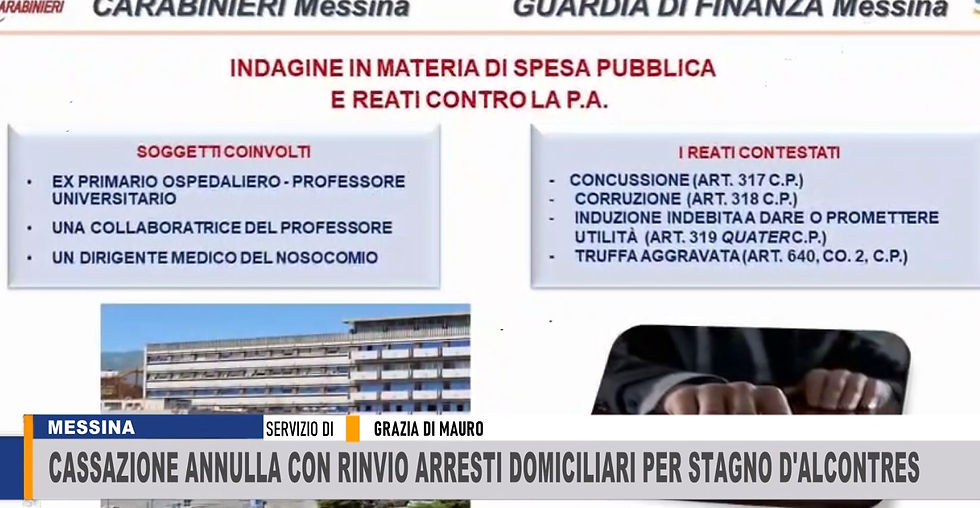 La Corte di Cassazione ha annullato con rinvio il provvedimento che aveva confermato gli arresti domiciliari per Francesco Stagno d’Alcontres.L’ex primario di Chirurgia plastica del Policlinico di Messina ed ex parlamentare è stato arrestato lo scorso 5 dicembre con l’accusa di aver richiesto circa 700mila euro a case farmaceutiche e aziende di dispositivi medicali.